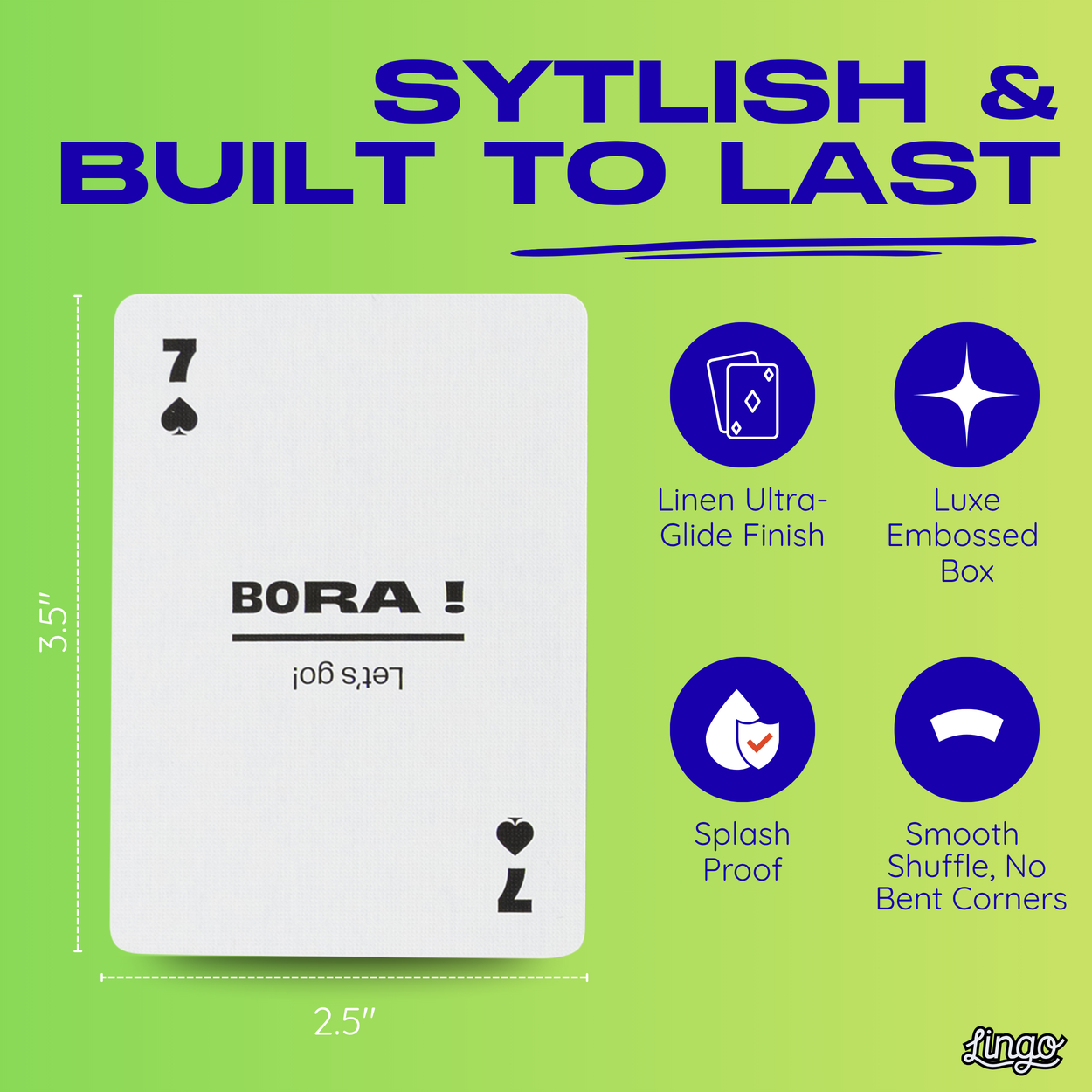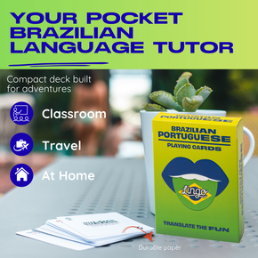 Experience the energy of Brazilian Portuguese with our Brazil Slang edition — your key to connecting with the music, culture, and joyful spirit of Brazil. Learn everyday phrases like “Oi” (Hi) and playful slang heard in the streets of Rio, São Paulo, and Salvador. Whether you’re dancing to samba, celebrating Carnaval, or simply dreaming of sunshine and beach life, this deck helps you speak like a local and feel the rhythm of Brazil from the inside out. Perfect for travellers, language learners, or anyone who loves Brazilian food, music, and passion. Viva o Brasil!