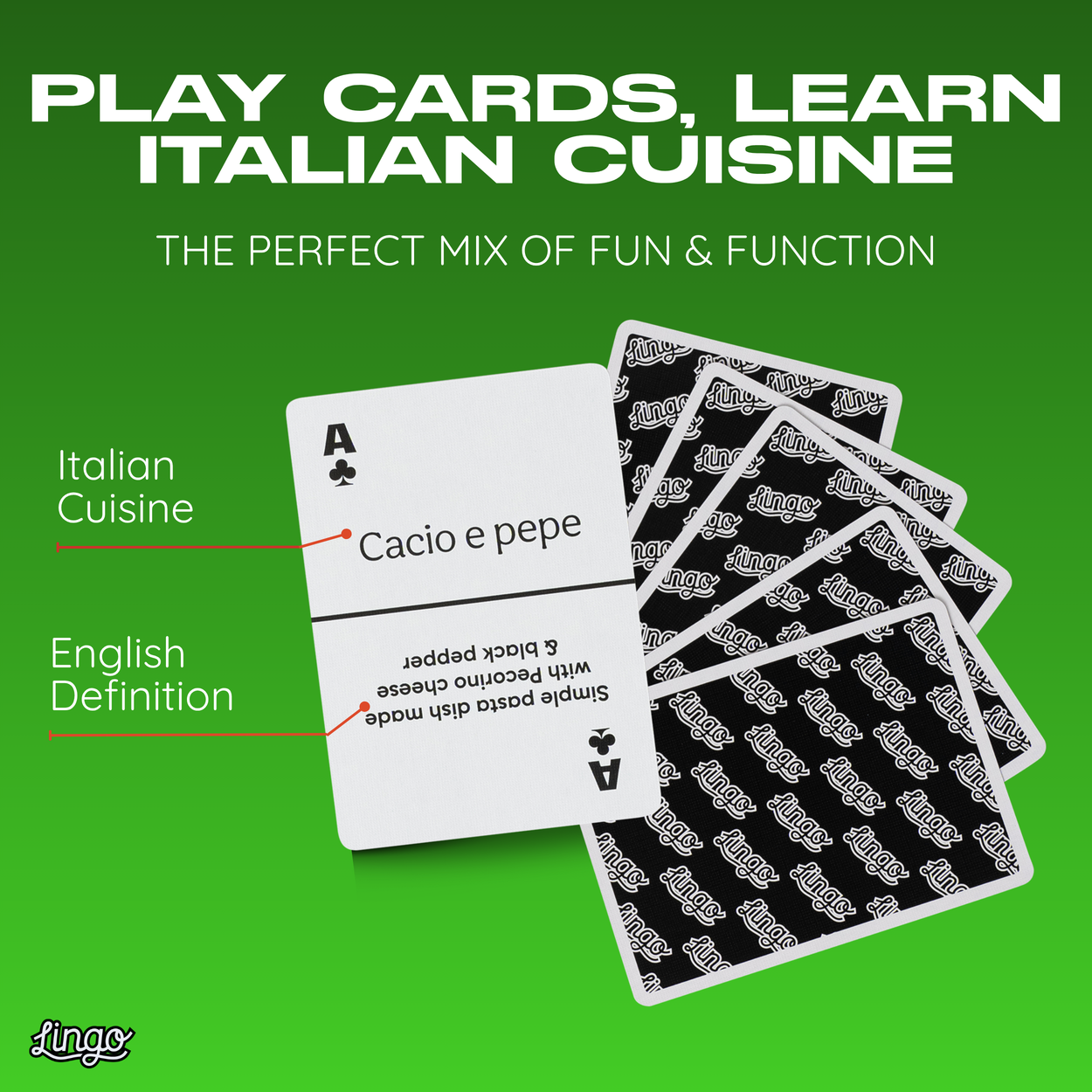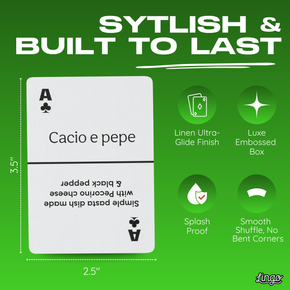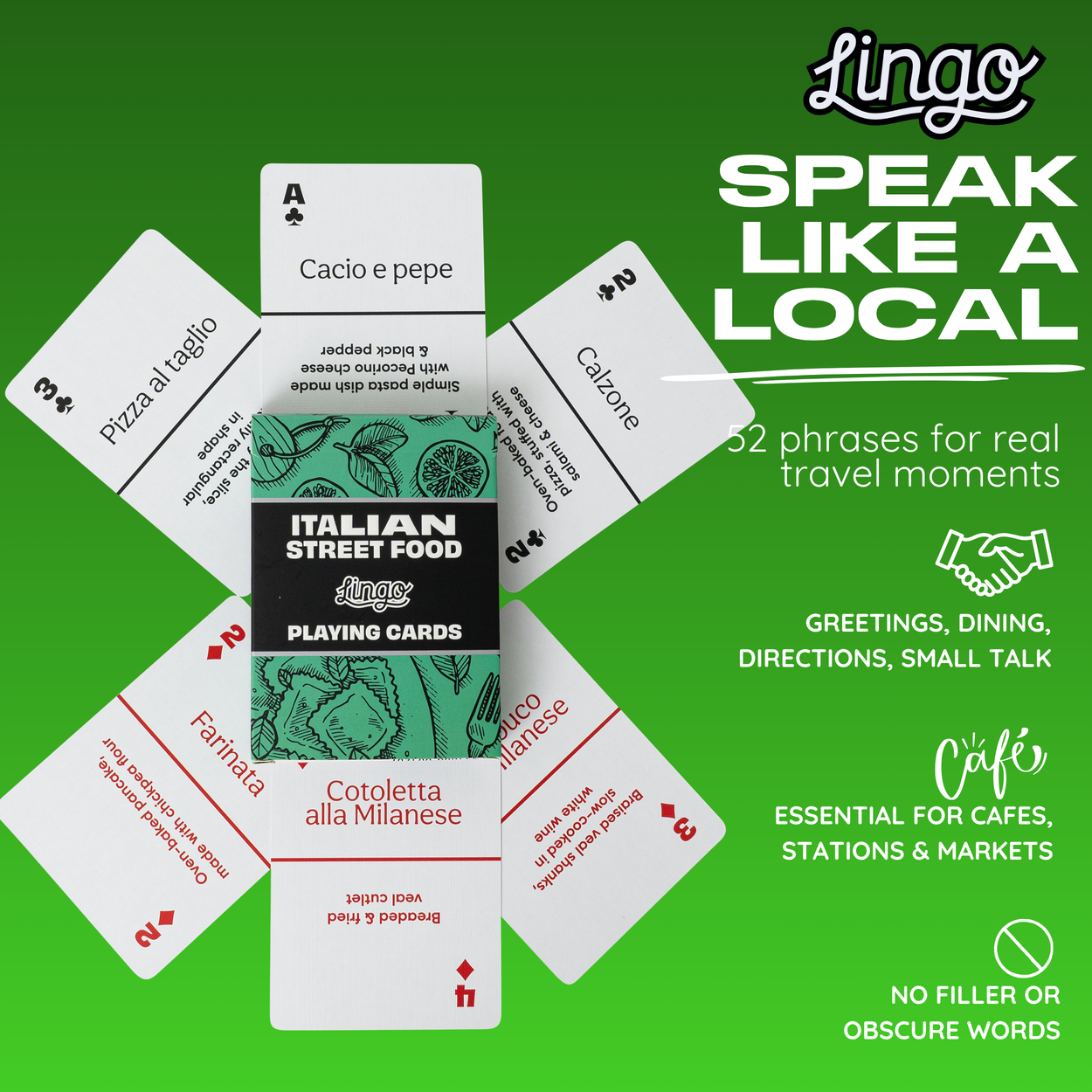 Experience la dolce vita with our Italian Street Food deck — a delicious journey through the flavours of Italy, one card at a time. From wood-fired pizza in Naples to creamy gelato in Florence and arancini bursting with flavour in Sicily, each card features authentic street food favourites, cultural insights, and Italian phrases to help you order like a true local. Perfect for food lovers, home cooks, travelers to Italy, or anyone obsessed with pasta, risotto, and espresso culture, this deck brings the magic of Italy’s bustling piazzas and cosy trattorias straight to your table. Buon appetito!