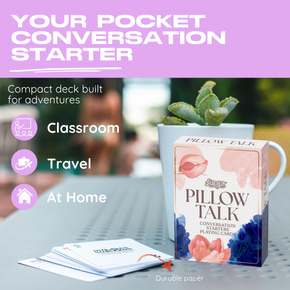 Strengthen your bond and ignite deeper connection with Pillow Talk — a couples’ conversation deck designed to turn quiet moments into meaningful ones. Featuring 52 playful, romantic, and thought-provoking prompts, this deck helps partners explore emotions, desires, memories, and dreams together. Whether you’re newly dating or years into your love story, Pillow Talk is perfect for date nights, cozy evenings, weekend getaways, or spontaneous late-night chats. Skip the small talk and dive into laughter, vulnerability, and intimacy — one card at a time.