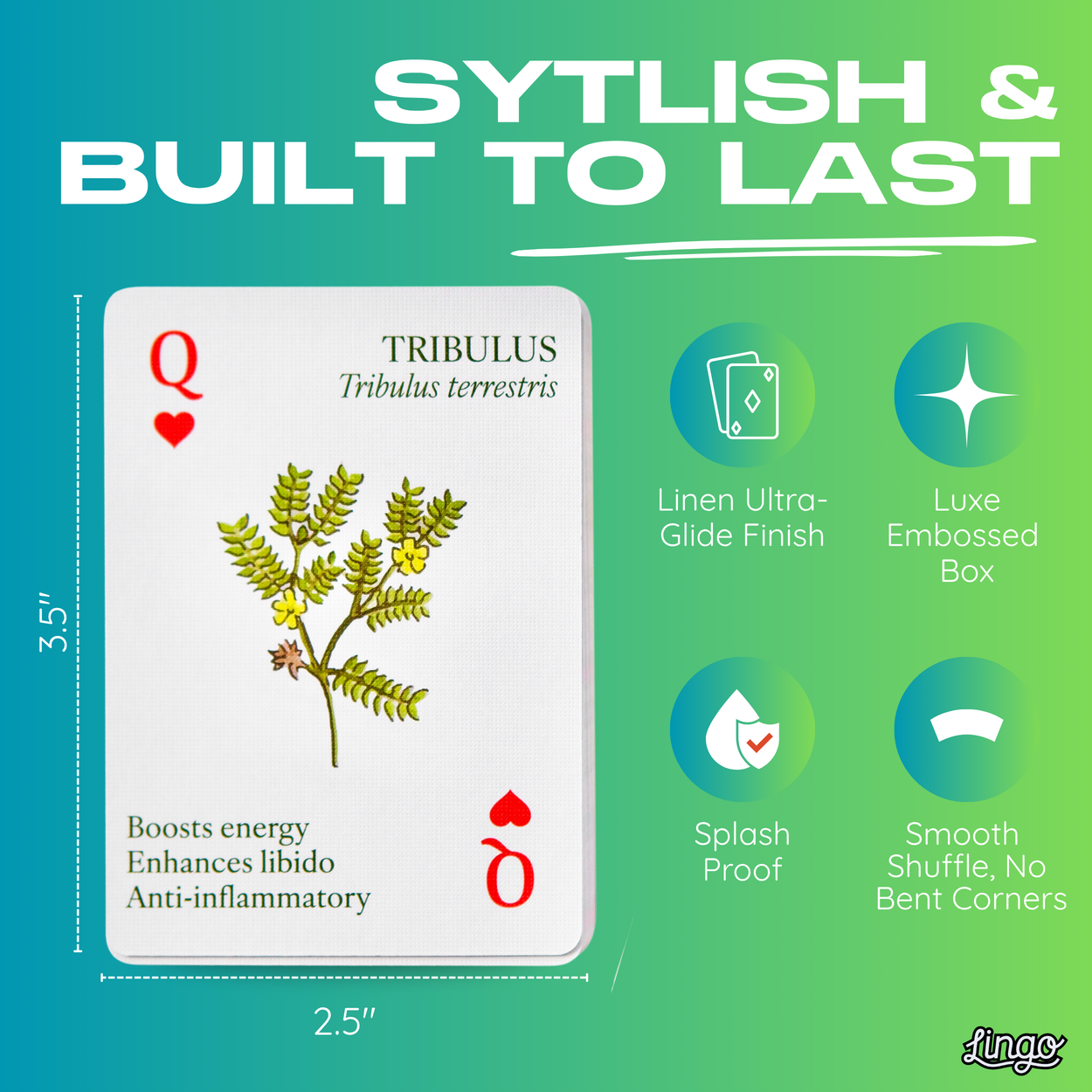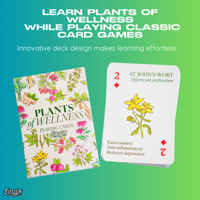 Reconnect with nature’s healing wisdom with the Plants of Wellness Lingo Deck — a beautifully designed collection of 52 cards featuring powerful herbs, botanicals, and natural remedies. Each card highlights a plant’s traditional uses, modern wellness benefits, and fascinating facts drawn from Ayurvedic, Indigenous, and holistic healing practices. Whether you’re a wellness enthusiast, herbalist in training, or simply curious about natural remedies, this deck makes it easy to learn, reflect, and bring more balance into everyday life. Shuffle your way to a greener, healthier mindset — one plant at a time.