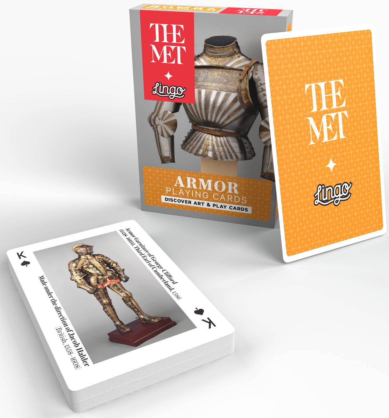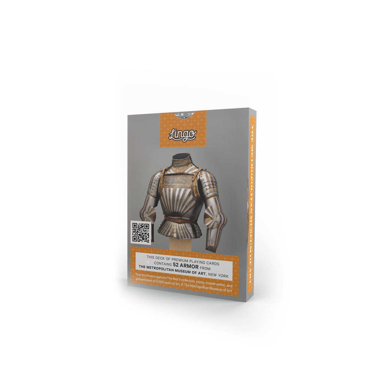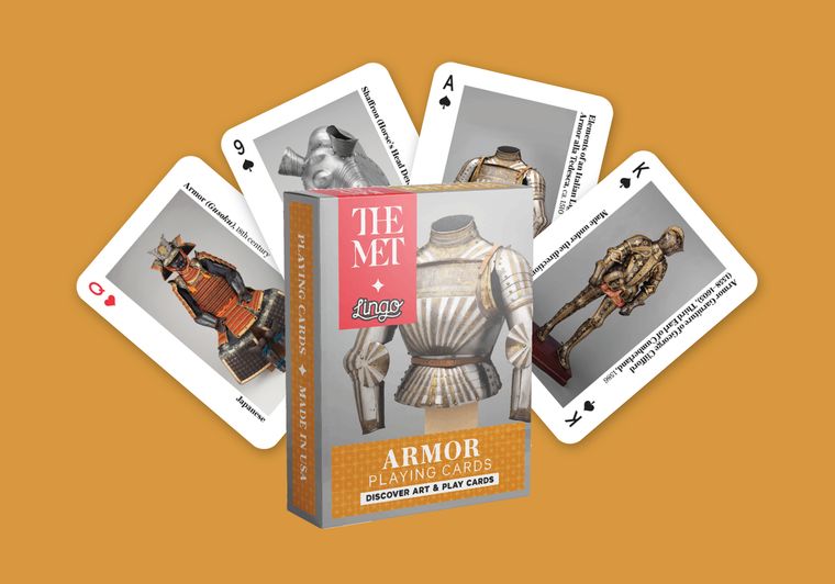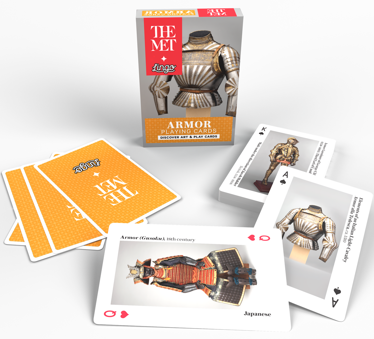Continue shoppingArms and armor have appeared in virtually every culture through the millennia, though their styles, materials, and applications are vast. Comprising some 14,000 objects, The Met collection of arms and armor is one of the most comprehensive of its kind. From a magnificent Japanese mask (1745) bearing the ferocious face of Jikokuten, one of the Four Kings of Heaven, to an exquisitely decorated British suit of gold and steel (1527) probably forged for King Henry VIII, this deck presents highlights and hidden gems of the Museum’s renowned Department of Arms and Armor.