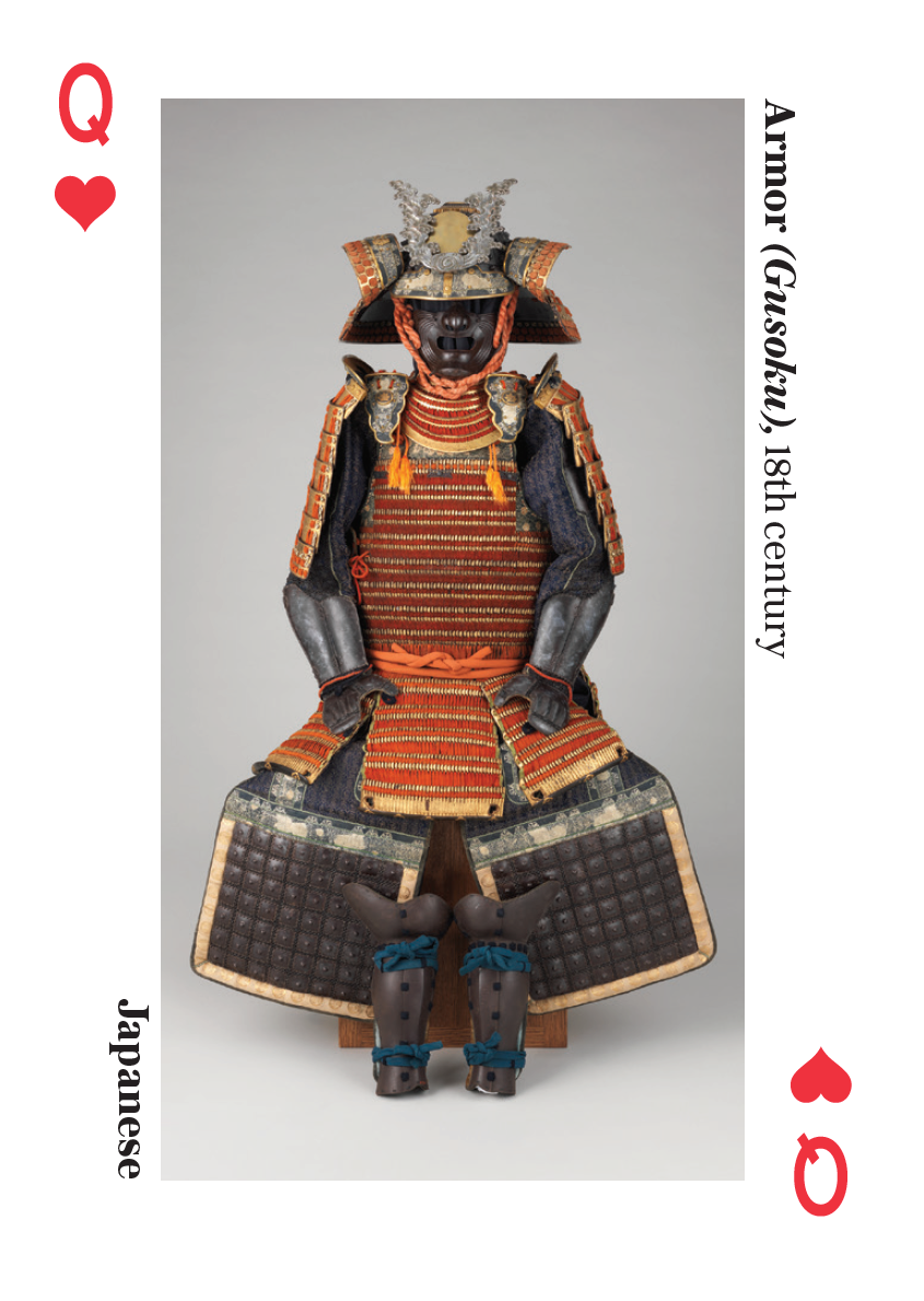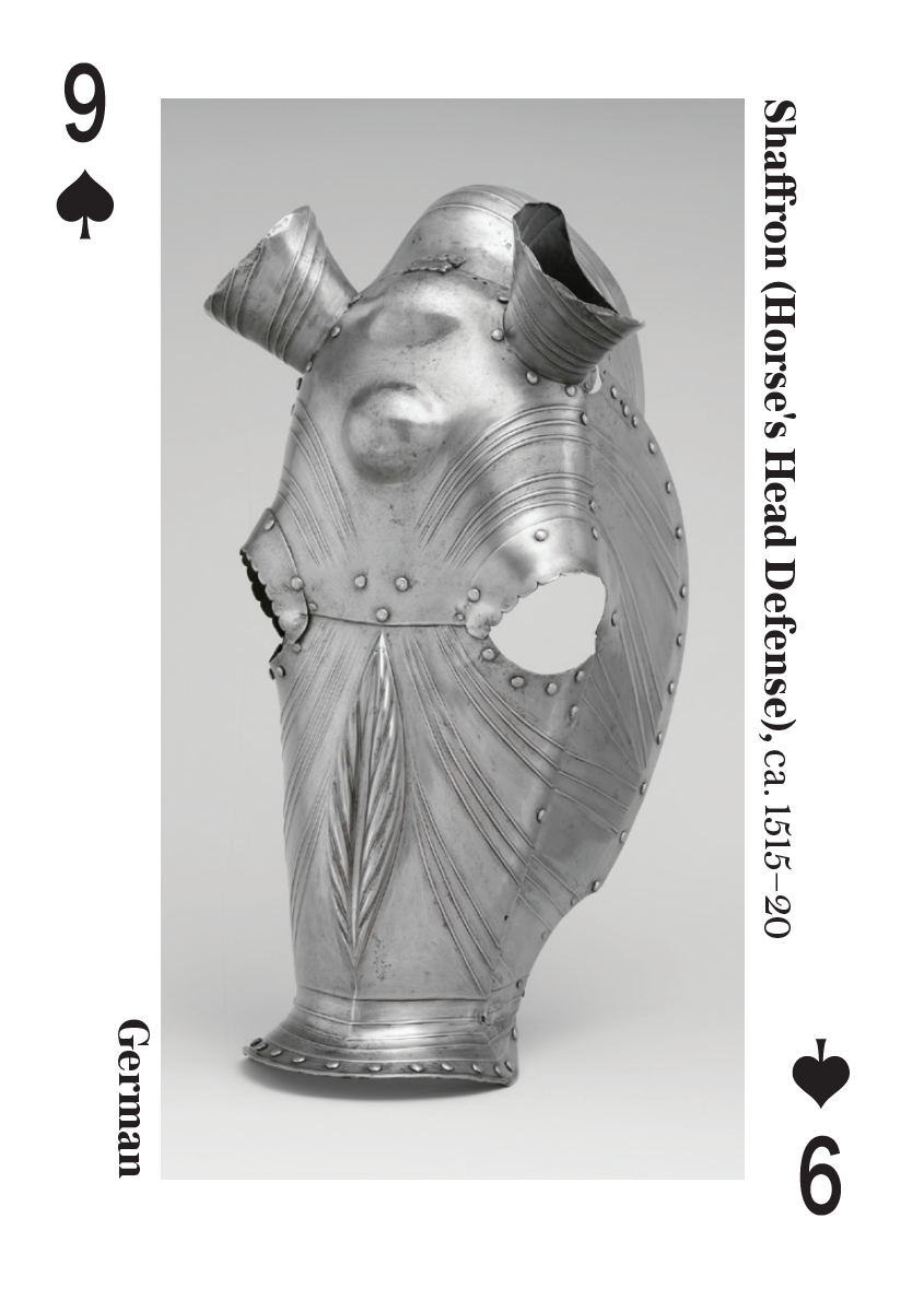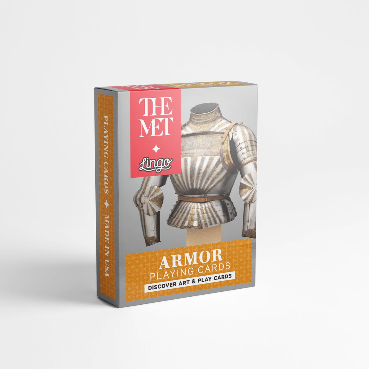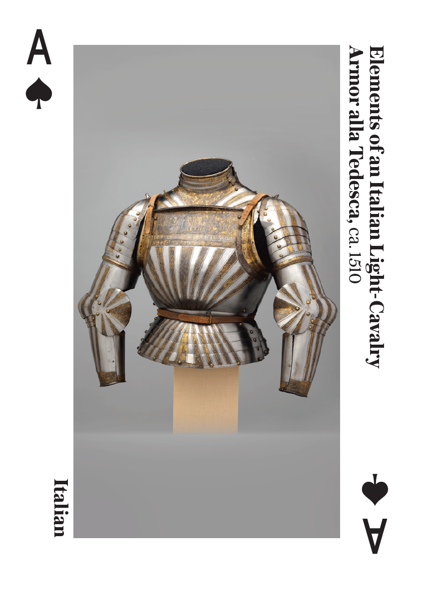 Continue shoppingArms and armor have appeared in virtually every culture through the millennia, though their styles, materials, and applications are vast. Comprising some 14,000 objects, The Met collection of arms and armor is one of the most comprehensive of its kind. From a magnificent Japanese mask (1745) bearing the ferocious face of Jikokuten, one of the Four Kings of Heaven, to an exquisitely decorated British suit of gold and steel (1527) probably forged for King Henry VIII, this deck presents highlights and hidden gems of the Museum’s renowned Department of Arms and Armor.