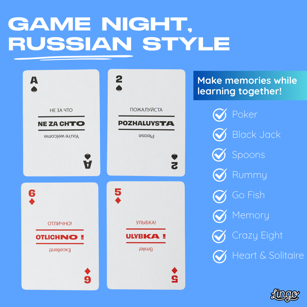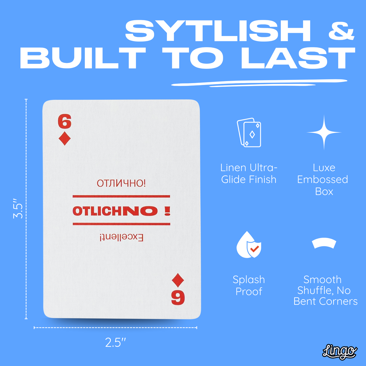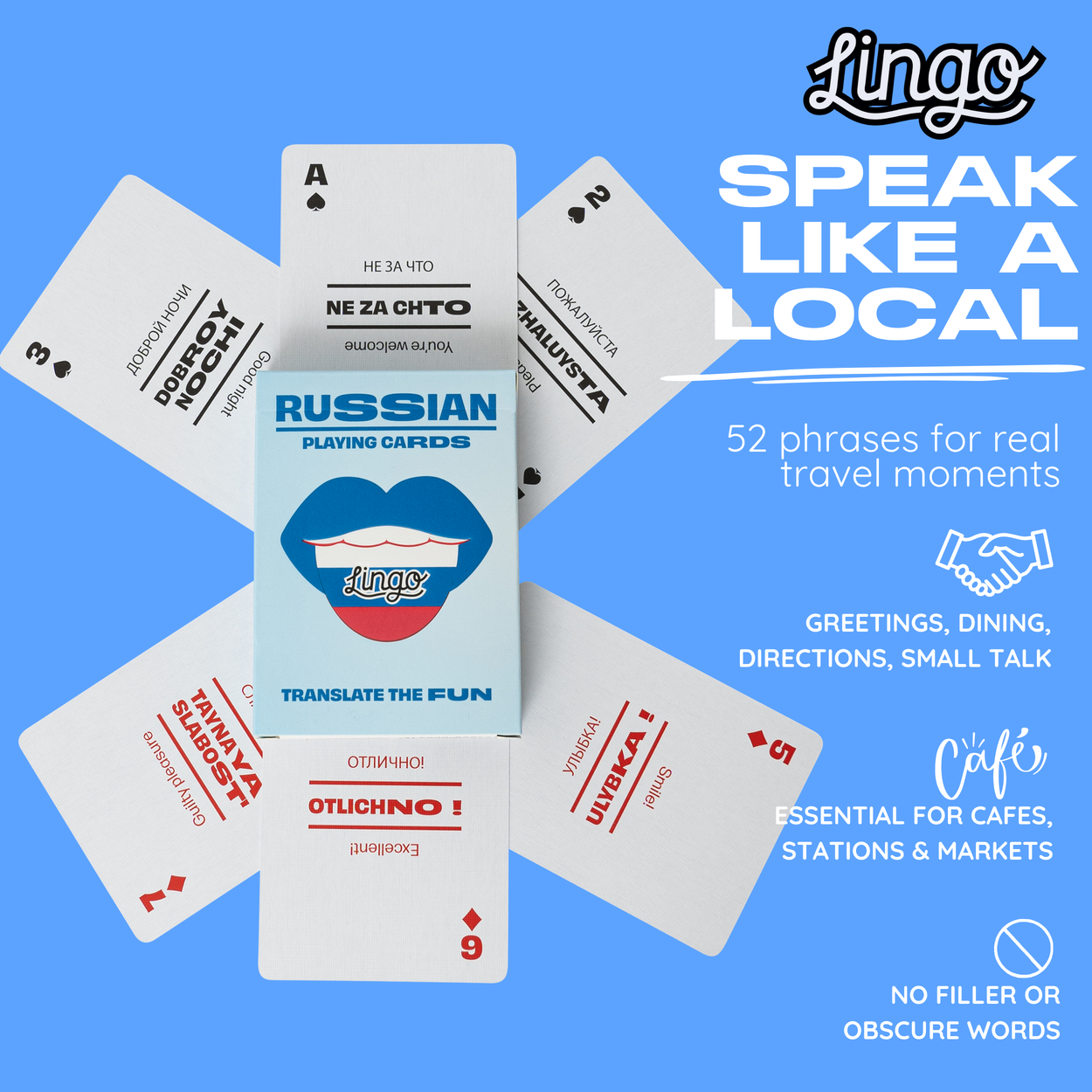 Discover the depth of Russian language and culture — far beyond vodka and clichés. From Tolstoy and Tchaikovskyto dachas, samovars, and babushka wisdom, this deck introduces you to the expressions and traditions that define one of the world’s most intriguing nations. Learn everyday phrases and slang used across Moscow, St. Petersburg, and the vast Russian countryside, helping you communicate with confidence and appreciate the soul of its people. Perfect for travelers, Russian learners, or anyone exploring their Slavic roots, this deck offers a fun and authentic way to say more than just “na zdorovye.”